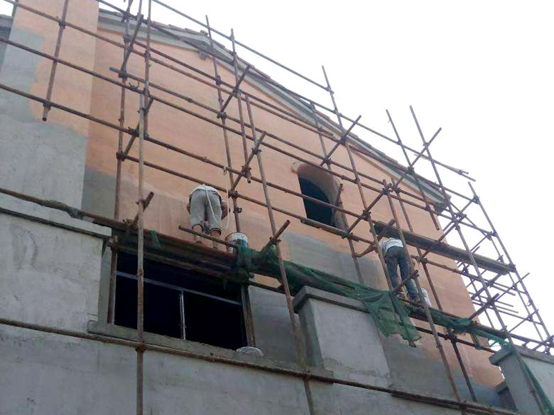 高層外墻涂料出外架拆卸以前施工好,便捷挪動,另加才放完以后,應(yīng)用金邊吊蘭就可以施工,易實際操作是。